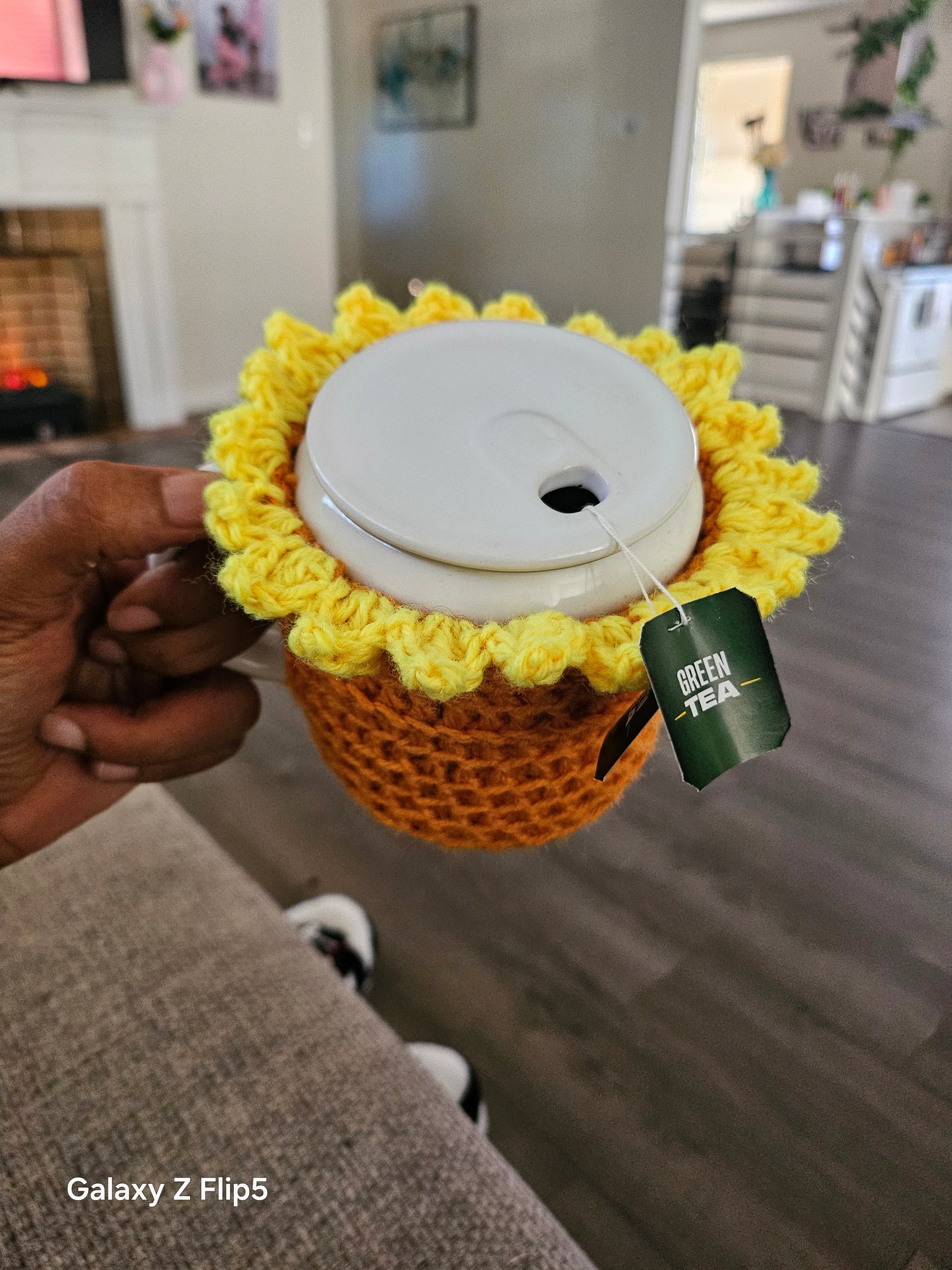 "Enjoy your favorite 🔥hot or cold ❄️beverage ☕️without the discomfort of extreme temperatures! This handmade crochet mug cozy acts as a fantastic insulator, keeping your hand at the perfect temperature longer while protecting you. Reusable and eco-friendly, it replaces disposable sleeves and adds a touch of cozy, personalized style to any mug. A perfect gift 🎁idea for the coffee or tea lover in your life!"