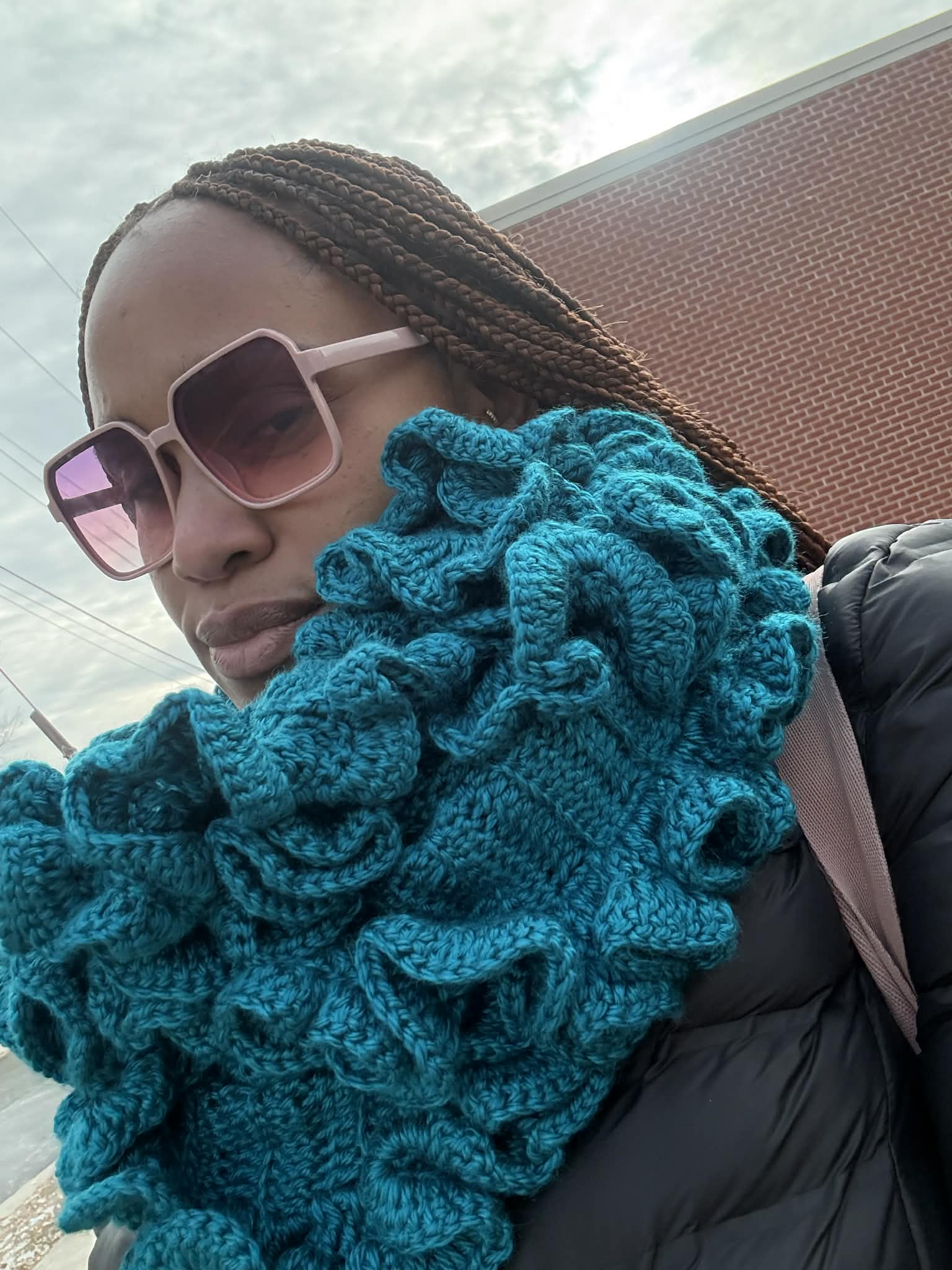 Elevate any outfit with the "Daydreamer" scarf🧣. It's lightweight with ruffles, with a fine lacy stitch pattern that provides a beautiful drape and an elegant, airy feel. Receive any color and shift your style into the softness of the yarn🧶 make it a unique statement piece for any season. ❄️🧥